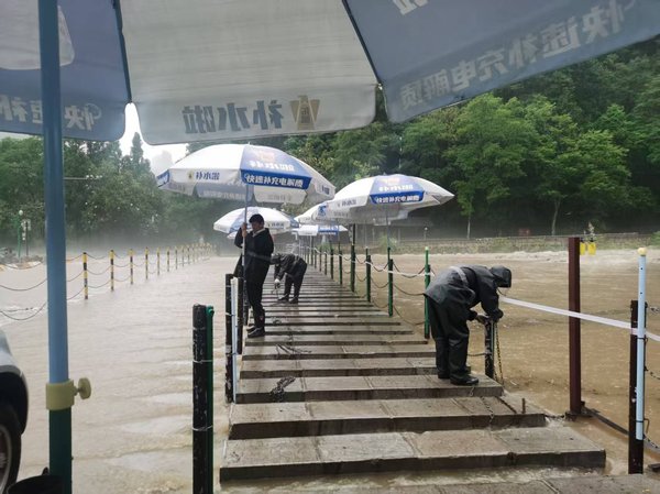 暴雨预警发布后,公司立即组建4支党员应急先锋队,全面投入防汛抢险。调度中心实行24小时双岗值班制,关键岗位值守力量增加一倍;将景区道路划分为4个网格责任区,每个责任区配备专属巡查车和抢险组;对高危边坡、临崖弯道及十里画廊河床路段等重点风险区域实施专人定点监守,确保隐患排查无盲区。