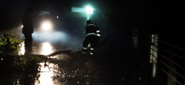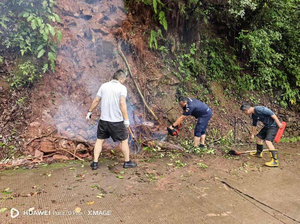景区道路滑坡、树木倒伏现场:党员先锋队冒雨清障
