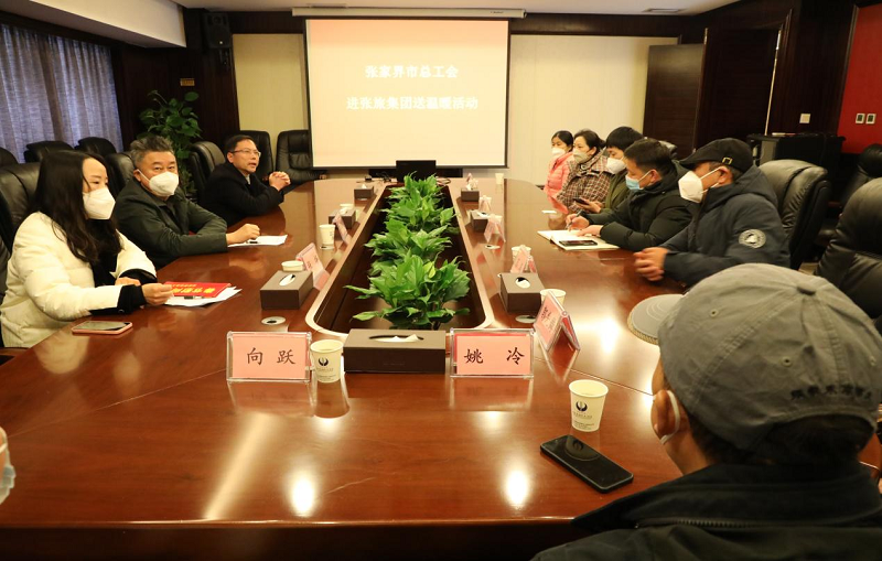 张家界市总工会党组书记、常务副主席张潇岳在慰问讲话中指出,2022年是旅游行业极为困难的一年,越是困难时期,企业越要关心关爱职工,积极提升职工特别是一线职工待遇,切实解决职工急难愁盼问题,加强企业管理,创造更大效益。广大职工要充分发挥各自优势,立足岗位积极贡献力量。全市各级工会要精心组织好“送温暖”活动,进一步发挥好“娘家人”坚强后盾作用,不断增强广大职工群众的幸福感和归属感。