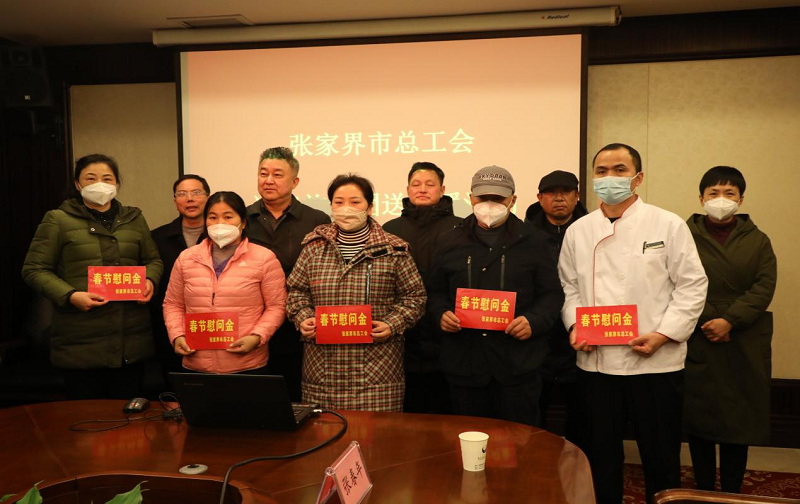张家界市总工会给张旅集团困难职工代表发放春节慰问金
