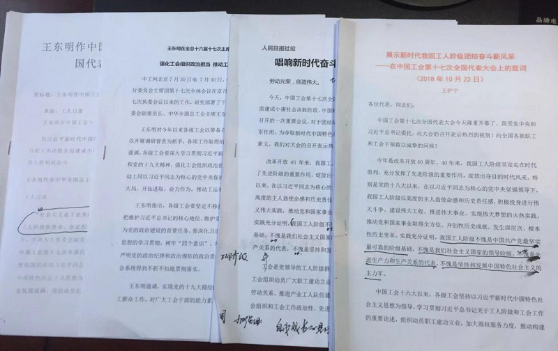 与会人员先后认真学习了王沪宁代表党中央发表的题为《展示新时代我国工人阶级团结奋斗新风采》的致辞和全国人大常委会副委员长、中华全国总工会主席王东明所作题为《以习近平新时代中国特色社会主义思想为指导 团结动员亿万职工为决胜全面建成小康社会 夺取新时代中国特色社会主义伟大胜利而奋斗》的报告,以及人民日报社论上刊载的《唱响新时代奋斗者之歌》,并深刻领会了大会精神。